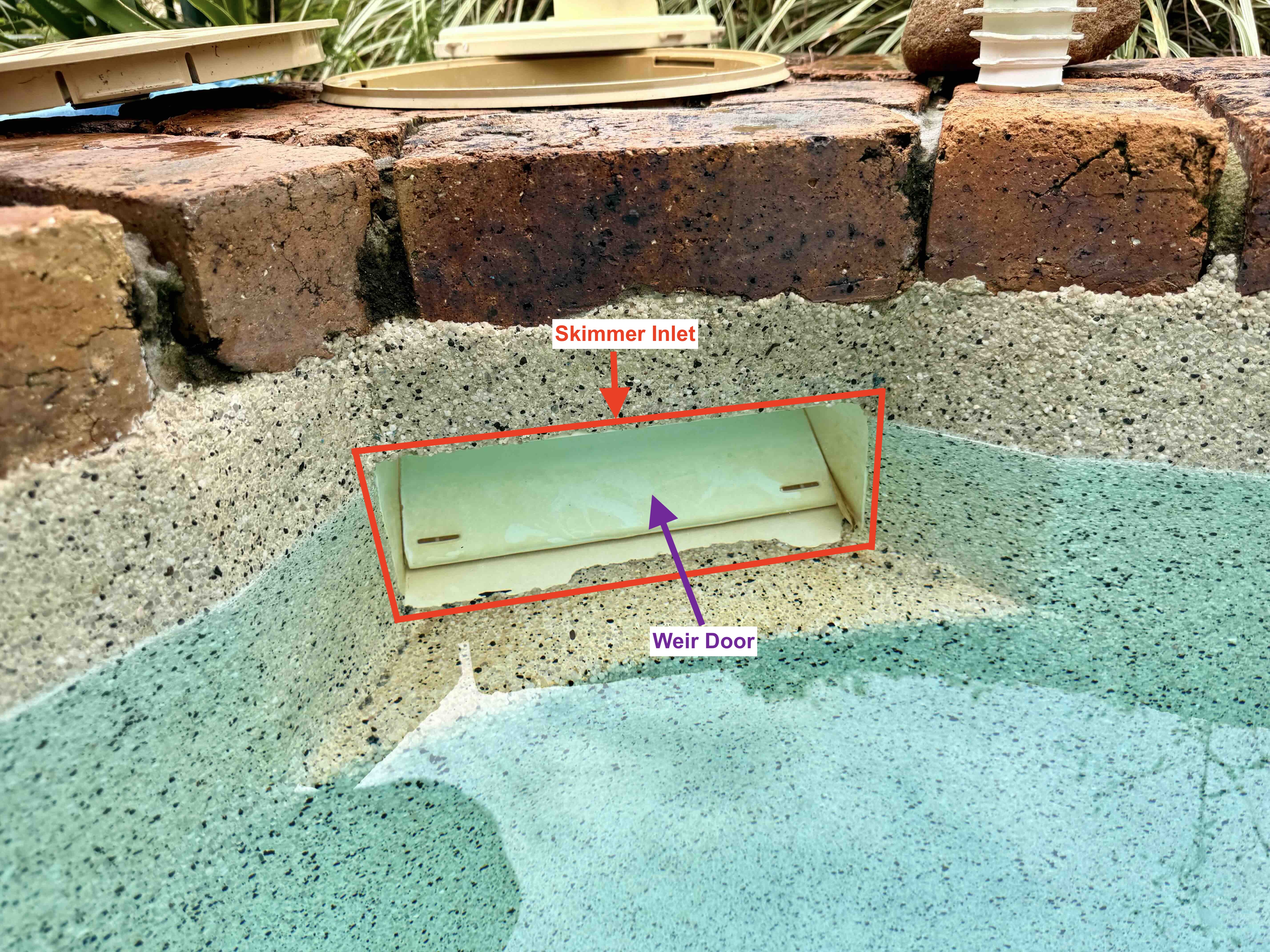 - If the water level is too high the skimmer inlet will not function as a skimmer (i.e. leaves and debris floating on the surface will not be sucked in through the skimmer inlet.